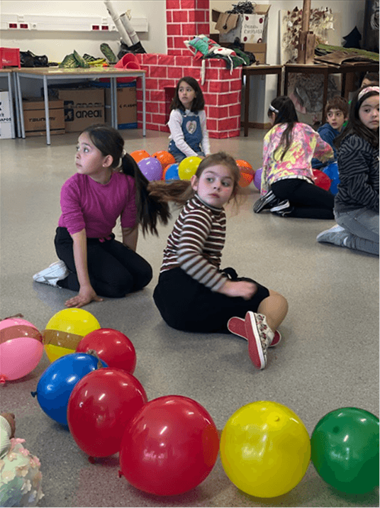 Depois dessa escuta inicial, desenvolvem-se sessões semanais em horário letivo, centradas em jogos, movimento, expressão corporal, reflexão em grupo e articulação com conteúdos escolares. O trabalho segue como referência o modelo CASEL, procurando transformar competências socioemocionais em prática concreta e observável no quotidiano da escola.